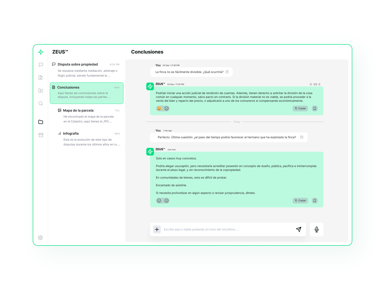 No. ZEUS™ es una herramienta de apoyo que automatiza tareas repetitivas y aporta fuentes verificables, pero la interpretación y estrategia jurídica siempre dependen del profesional.